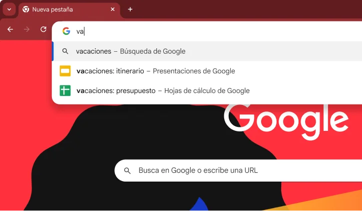Ingresa con tu Cuenta de Google para acceder a Google Drive. Con Chrome, puedes acceder rápidamente a tus archivos desde la barra de búsqueda y trabajar en ellos sin conexión.